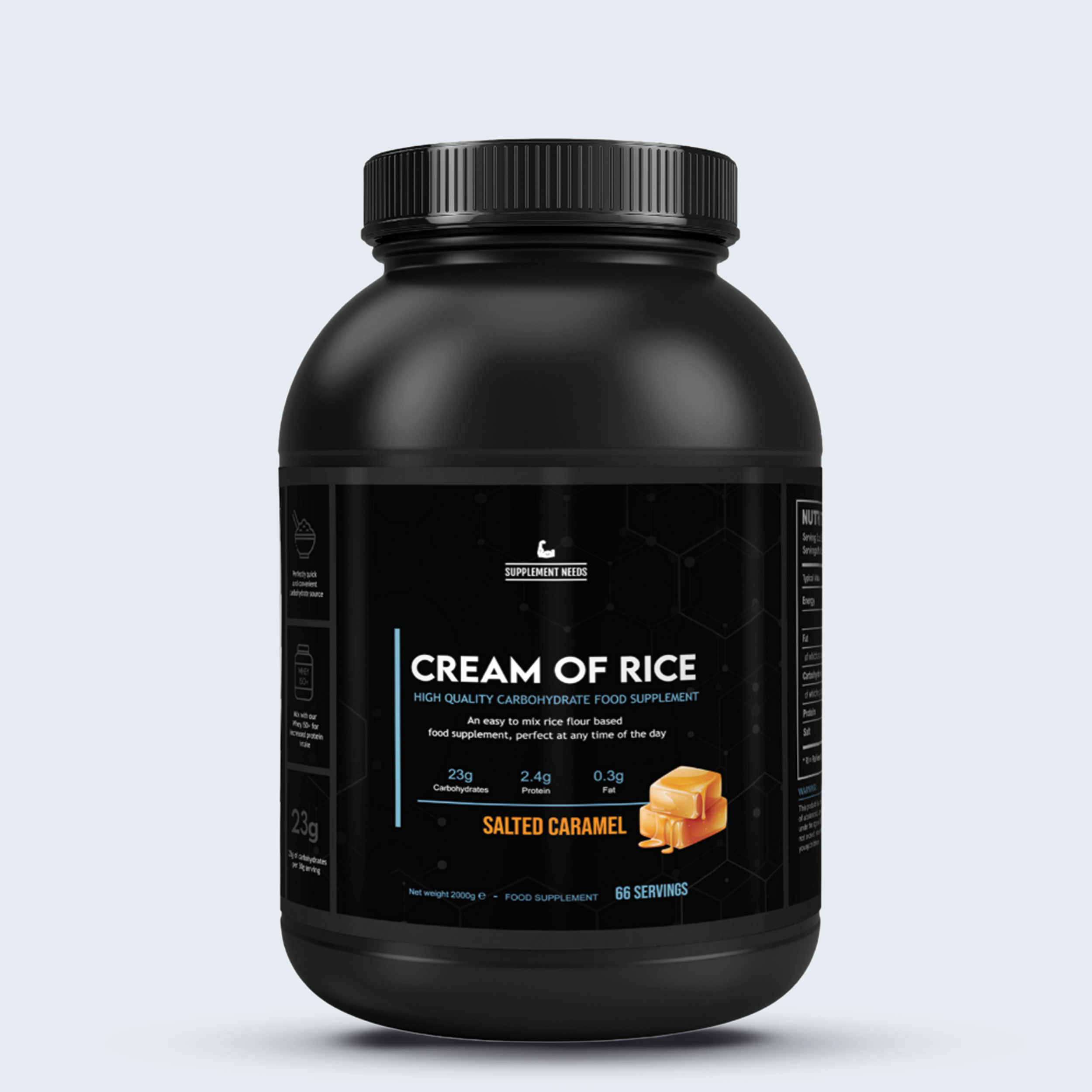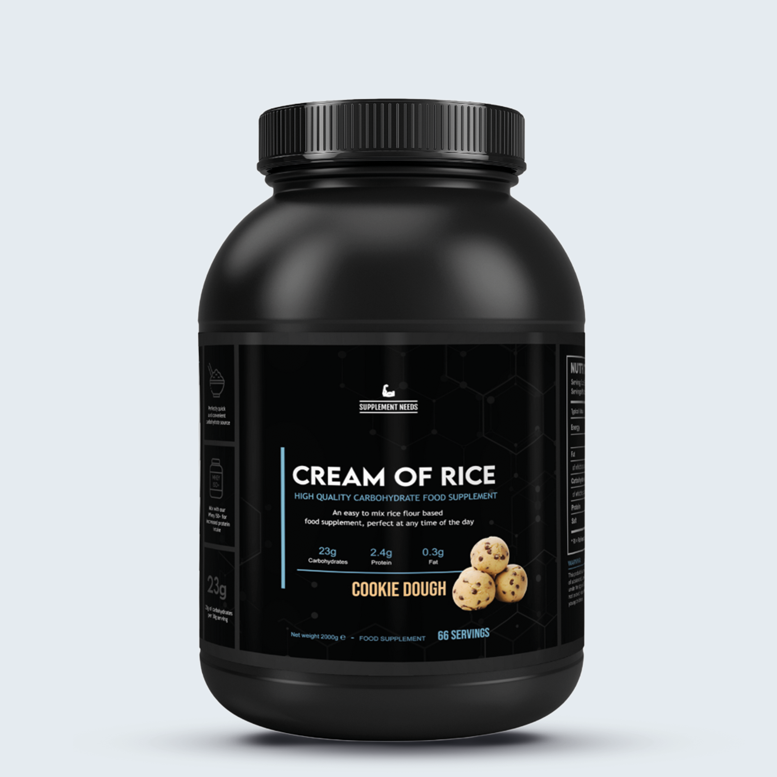 Supplement Needs staat voor transparantie, prestaties enkwaliteit. Hun Cream of Rice formule biedt precies wat bodybuilders en atletennodig hebben: pure, snelle koolhydraten in lekkere smaken, verpakt in eencleane, verantwoorde oplossing die past in elk trainingsregime.